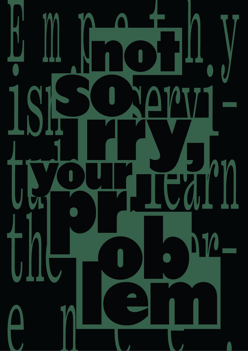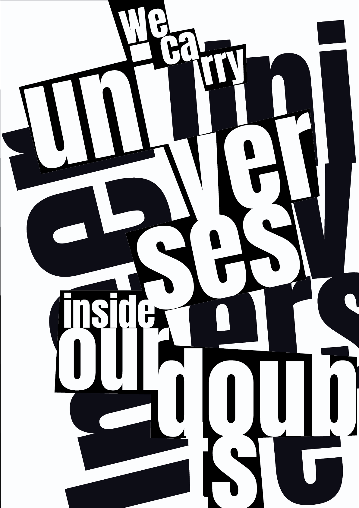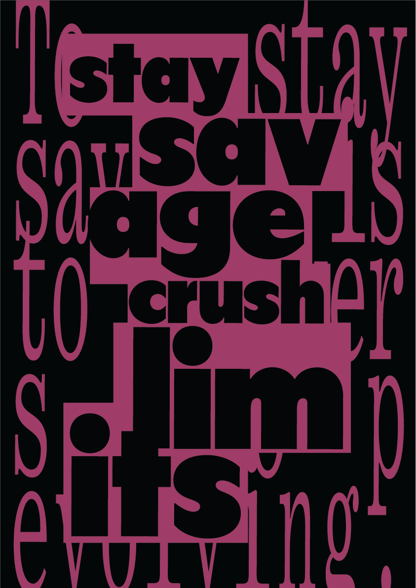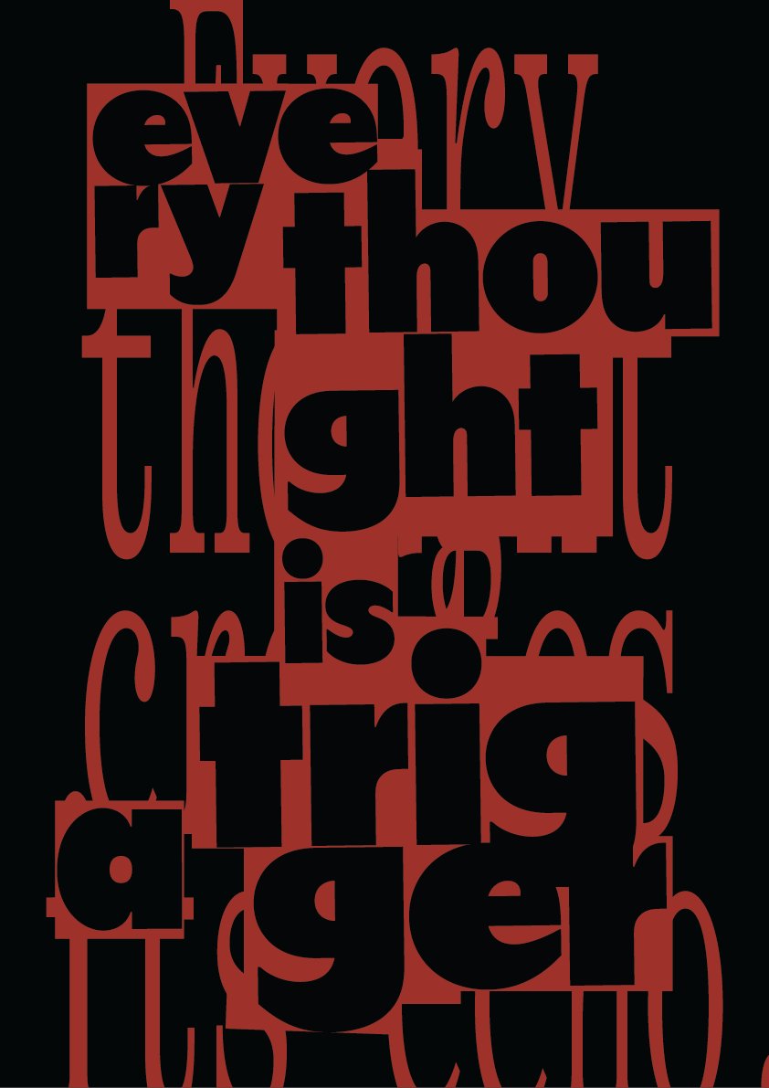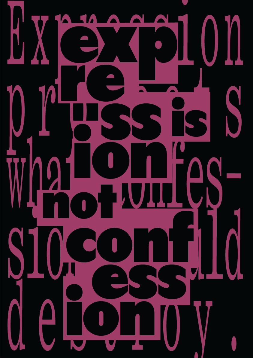 Pomerajući granice tradicionalnog dizajna, ekspresivna tipografija koristi forme slova za vizuelno izražavanje emocija i značenja. Uz očuvanu čitljivost, njena struktura odražava sadržaj, pojačavajući poruku kroz dinamičnu kompoziciju, kontrast, pokret i prostornu organizaciju.